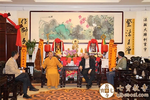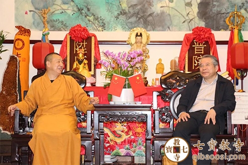 参观结束后,慧平大和尚在方丈室热情接待了祝主席一行。祝主席对闵行区佛教界和七宝教寺各方面的情况进行了询问和了解,祝主席表示:要与时俱进,坚持宗教中国化方向,传承弘扬好中国特色佛教文化,积极引导佛教与社会主义社会相适应。要坚持爱国爱教优良传统,发挥宗教道德教化功能,引导信众爱国爱教、正信正行,为涵养社会主义核心价值观,为培育公序良俗和社会正气作出积极贡献。慧平大和尚对祝主席一行的关心和支持表示感谢。