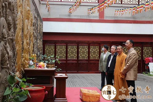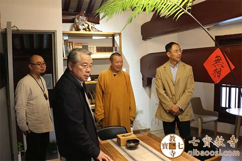 祝学军主席一行在慧平大和尚的陪同下参观了七宝教寺的素斋馆、禅茶一味等。参观过程中,慧平大和尚为祝主席一行介绍了七宝教寺的历史文化、素斋馆的运营等情况。